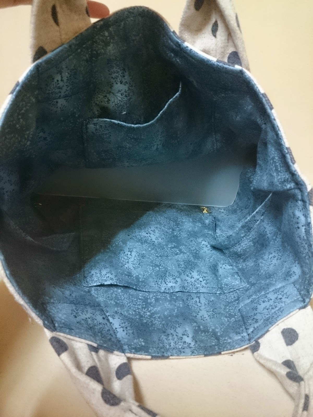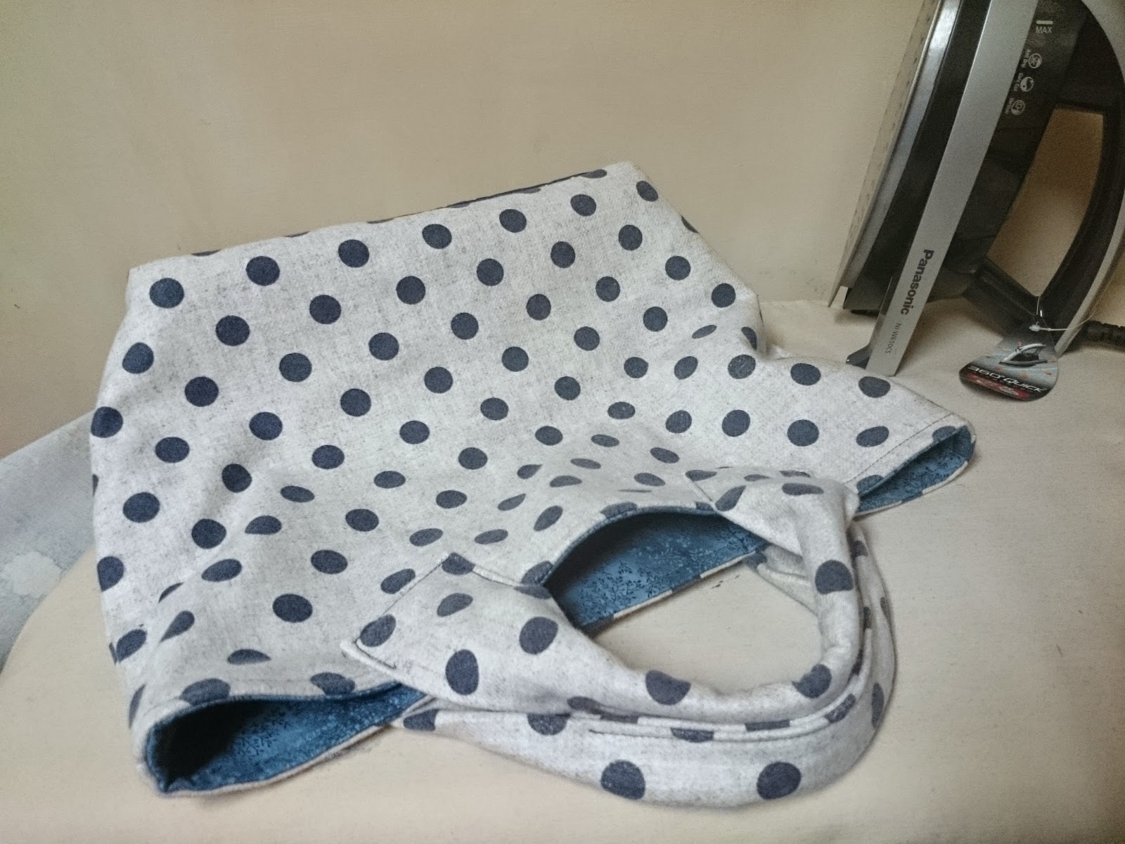 提把和表布一樣~燙厚襯~ 36*12車成36*6尺寸~再壓中間那部份 我不太愛另外買提把加~ 比較偏愛布提把